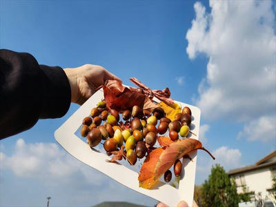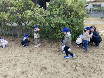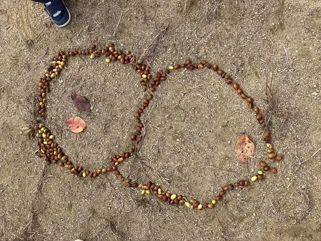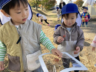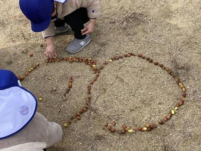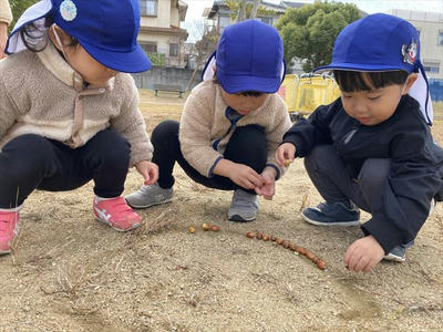 たくさん集めて保育園に持って帰ることも多いのですが、今日の遊びは一味違うよ。