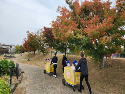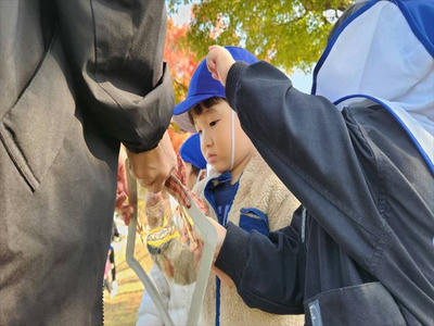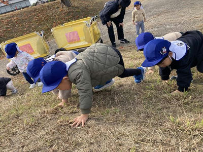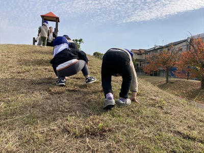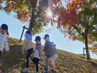 秋の自然に触れながら体も伸び伸び動かして遊んでいます。