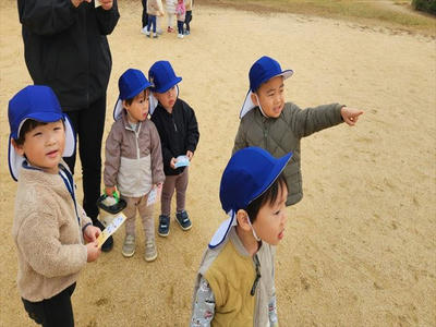 この日は曇り空で、残念ながら飛行機が見えなかったのですが、飛行機の音に気付いたお友だちが、「飛行機もあったよ」と教えてくれました。