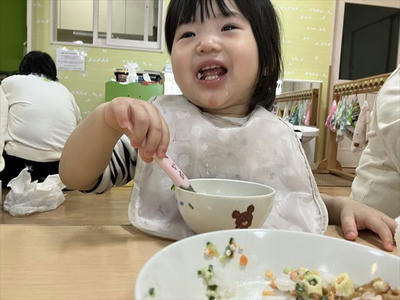 離乳食のお友だちも自分でスプーンを持って食べられることが増えました。