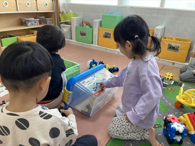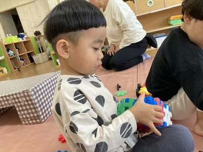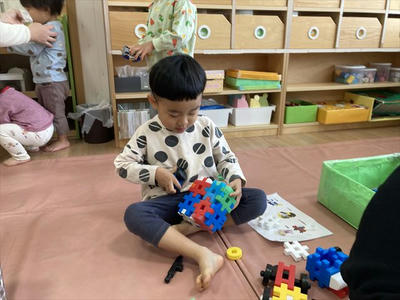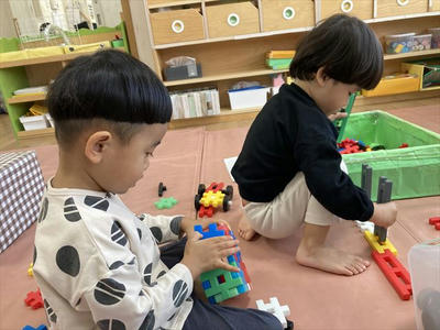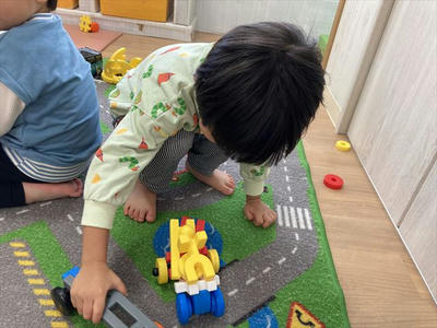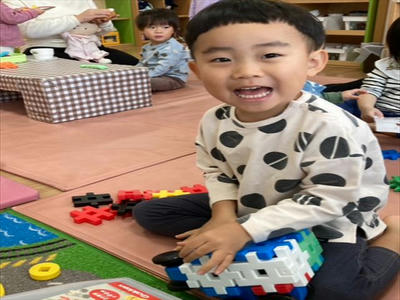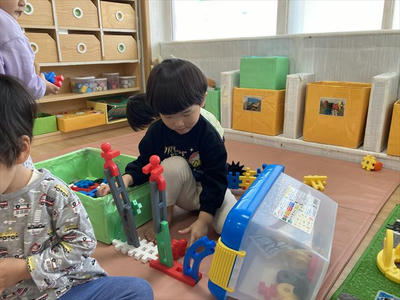 初めは「先生作って~」「くっつけられないよー」とおねだりしていた子どもたちも、今では自分たちで想像してオリジナルの作品が作れるようになりました。