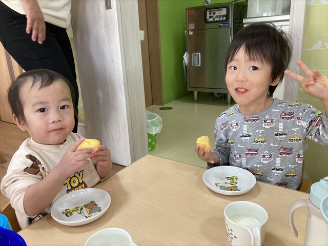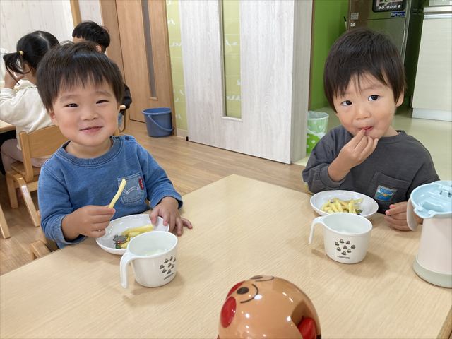 毎日給食が楽しみで、お家の方にメニューを聞いて、朝から「今日は〇〇だよ!」と楽しみにしている姿も見られます☆