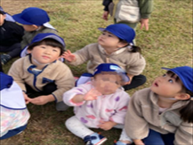 この日は曇り空で、残念ながら飛行機が見えなかったのですが、飛行機の音に気付いたお友だちが、「飛行機もあったよ」と教えてくれました。